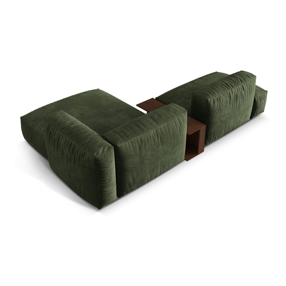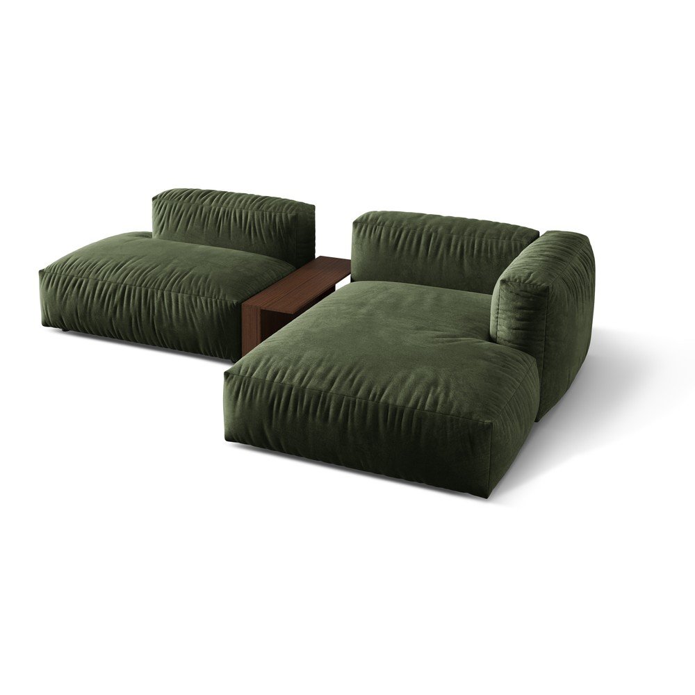 Zielony aksamitny narożnik modułowy (prawostronny/z szezlongiem) Martina – Micadoni
