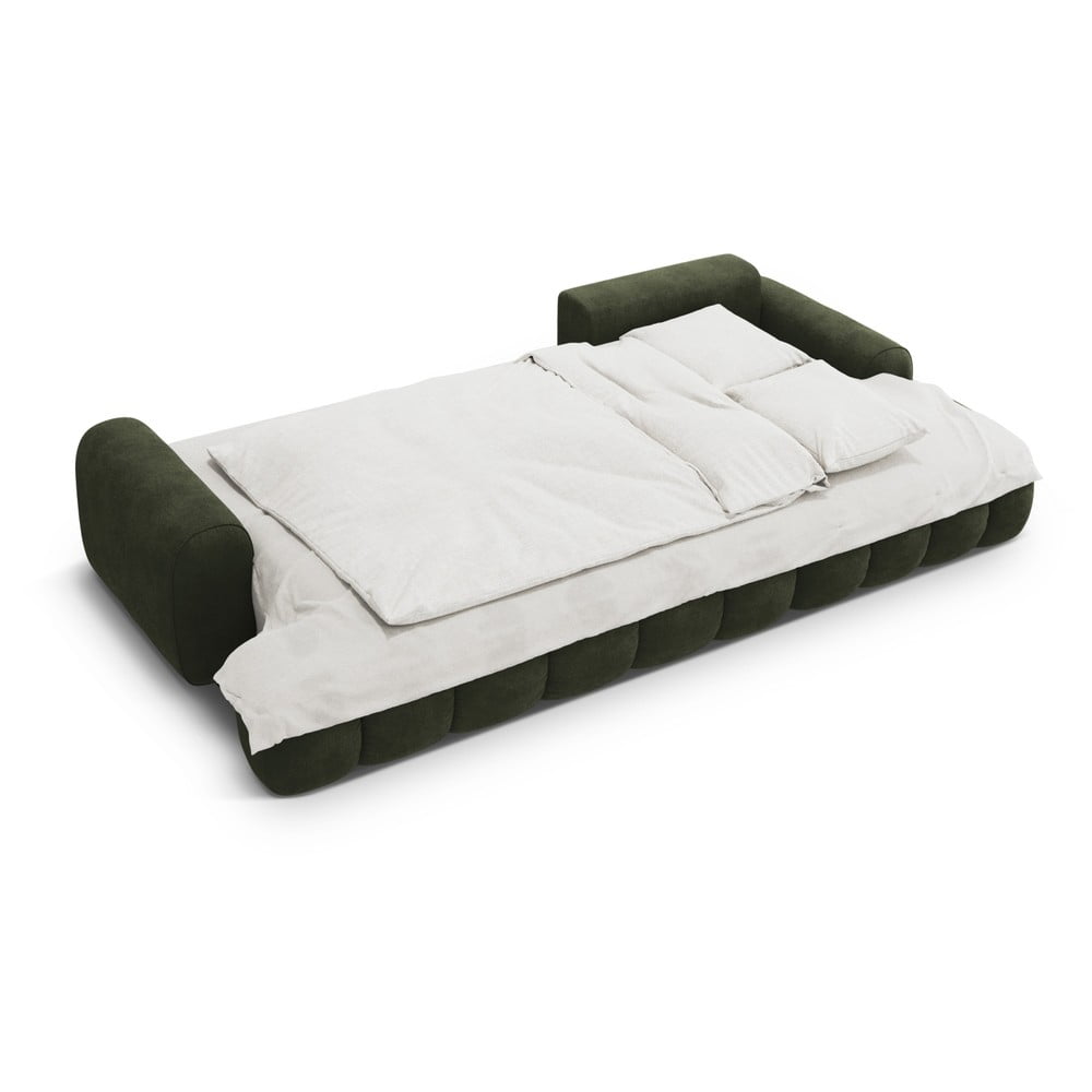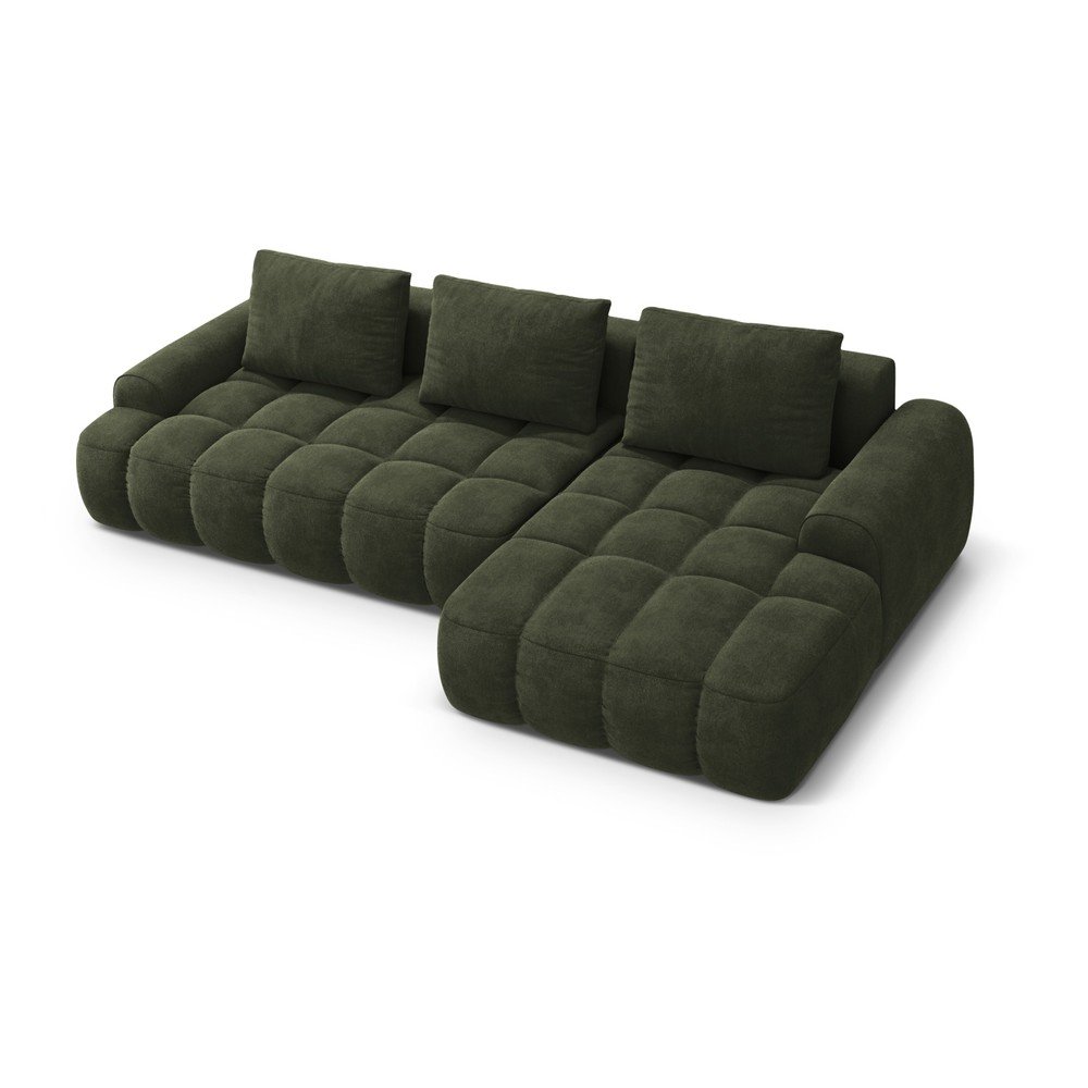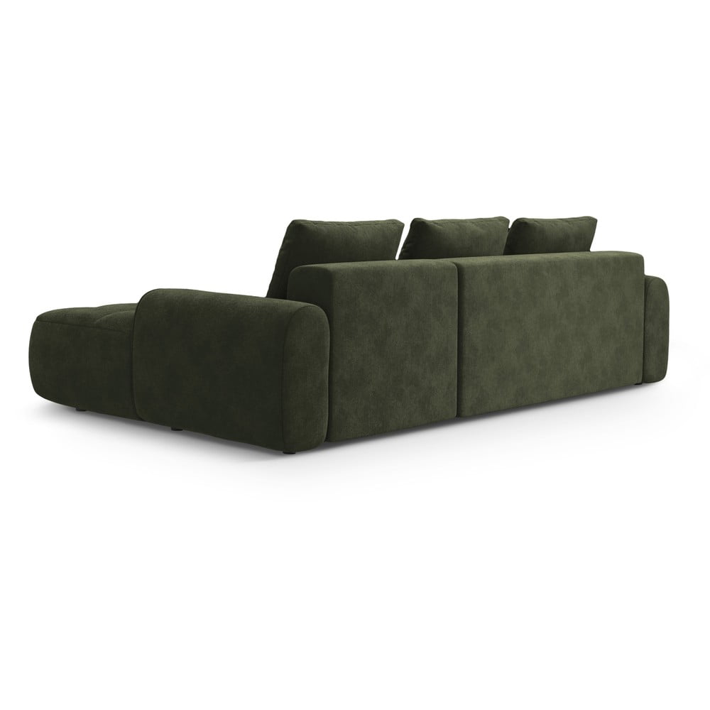 Zielony aksamitny rozkładany/ze schowkiem narożnik (prawostronny/z szezlongiem) Linz – Cosmopolitan Design
