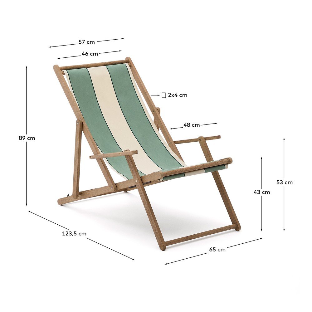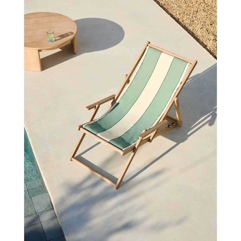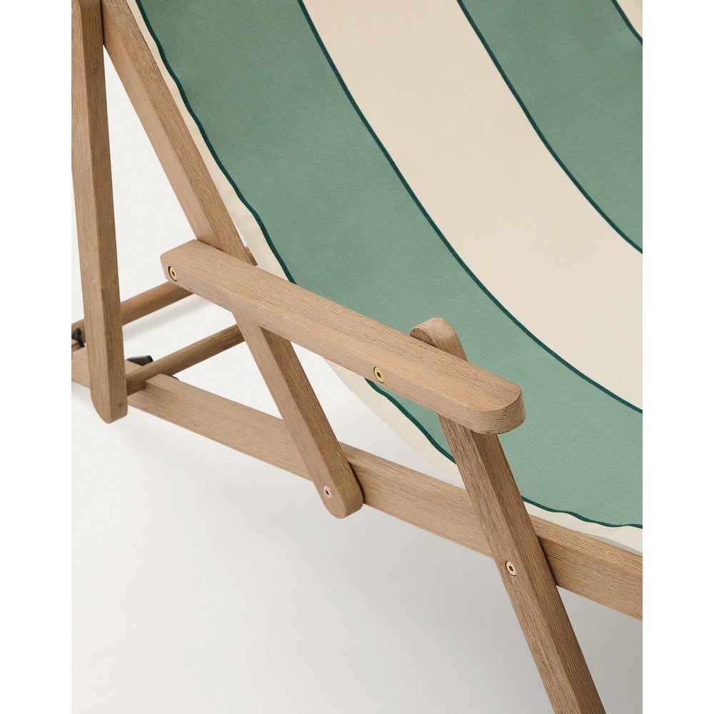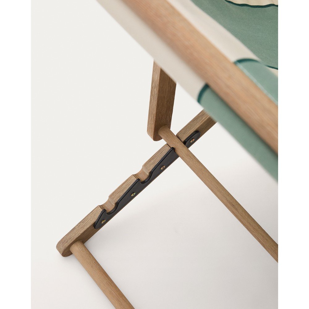 Drewniany leżak ogrodowy Vilara marki Kave Home z podłokietnikami to idealny wybór, aby w pełni cieszyć się relaksem na świeżym powietrzu. Jego tkanina w paski została zaprojektowana z myślą o maksymalnej trwałości i łatwości pielęgnacji. Jest antybakteryjna, szybkoschnąca, wodoodporna i odporna na promieniowanie UV, co gwarantuje komfort użytkowania przez długi czas.
