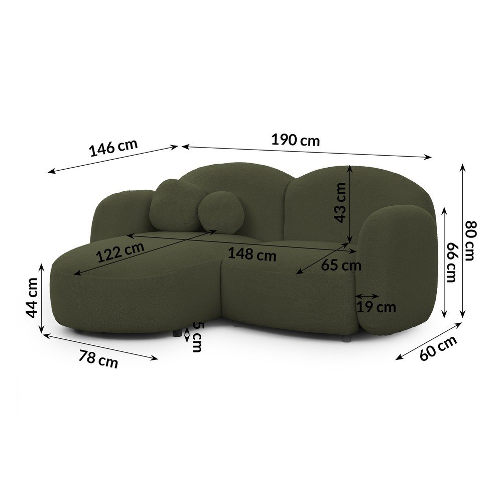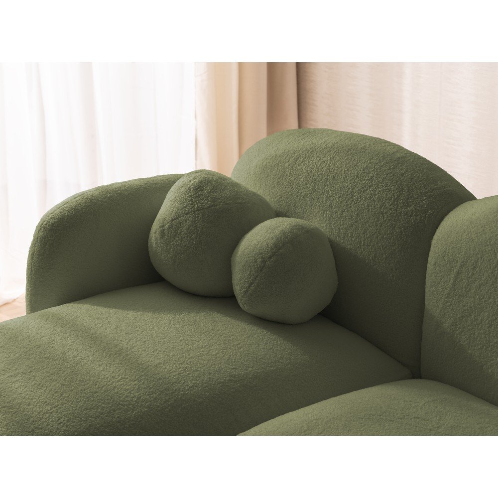 Zielony narożnik z materiału bouclé (lewostronny/z szezlongiem) Orbit – Ropez