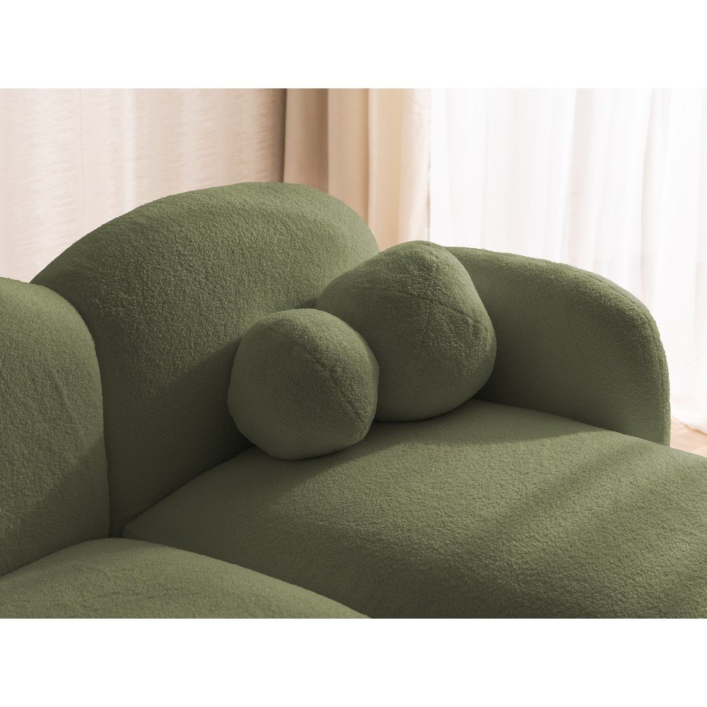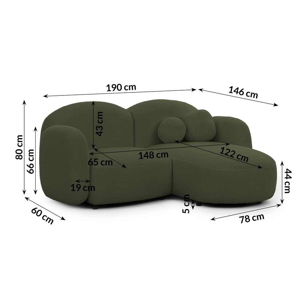 Zielony narożnik z materiału bouclé (prawostronny/z szezlongiem) Orbit – Ropez