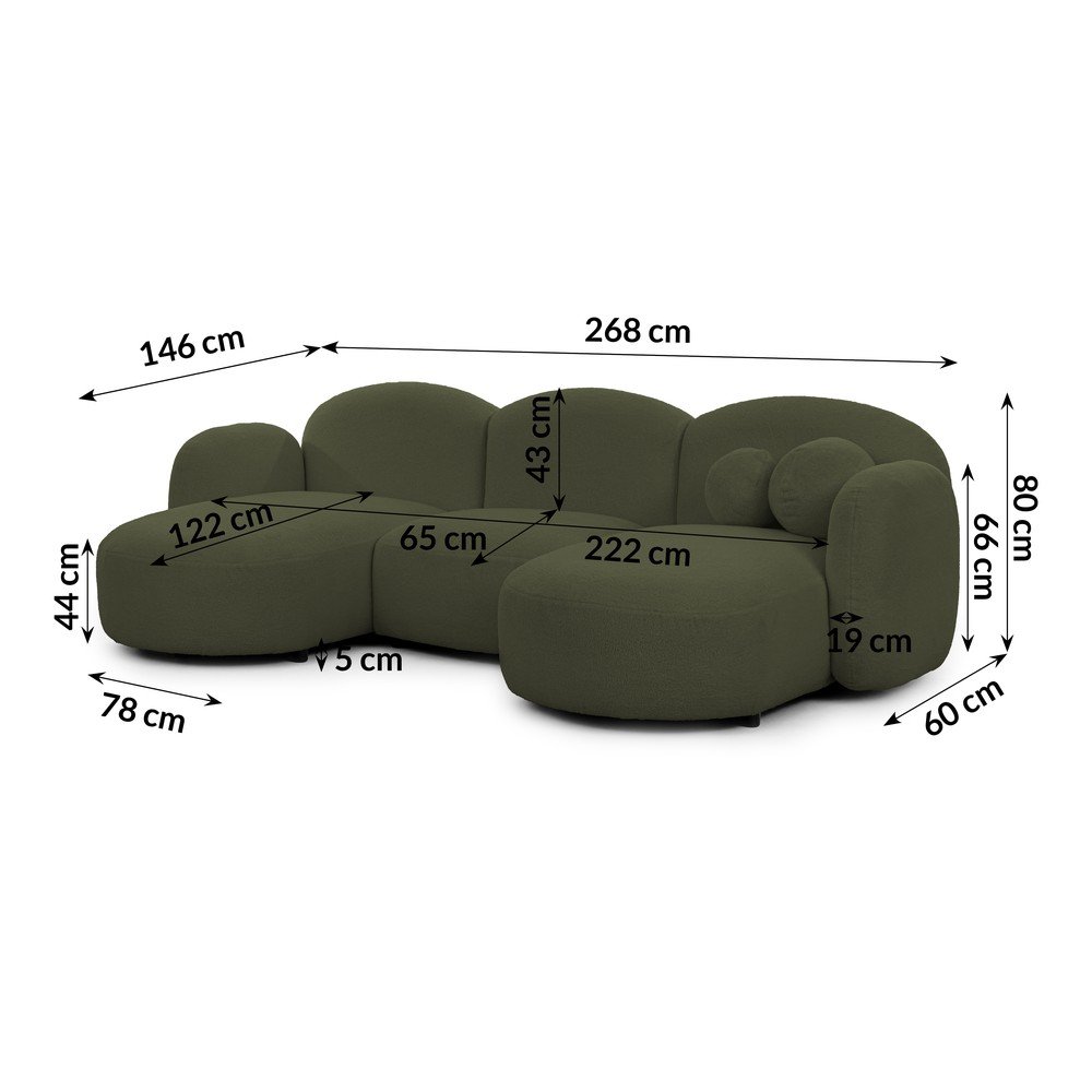 Zielony narożnik z materiału bouclé (w kształcie litery U) Orbit – Ropez