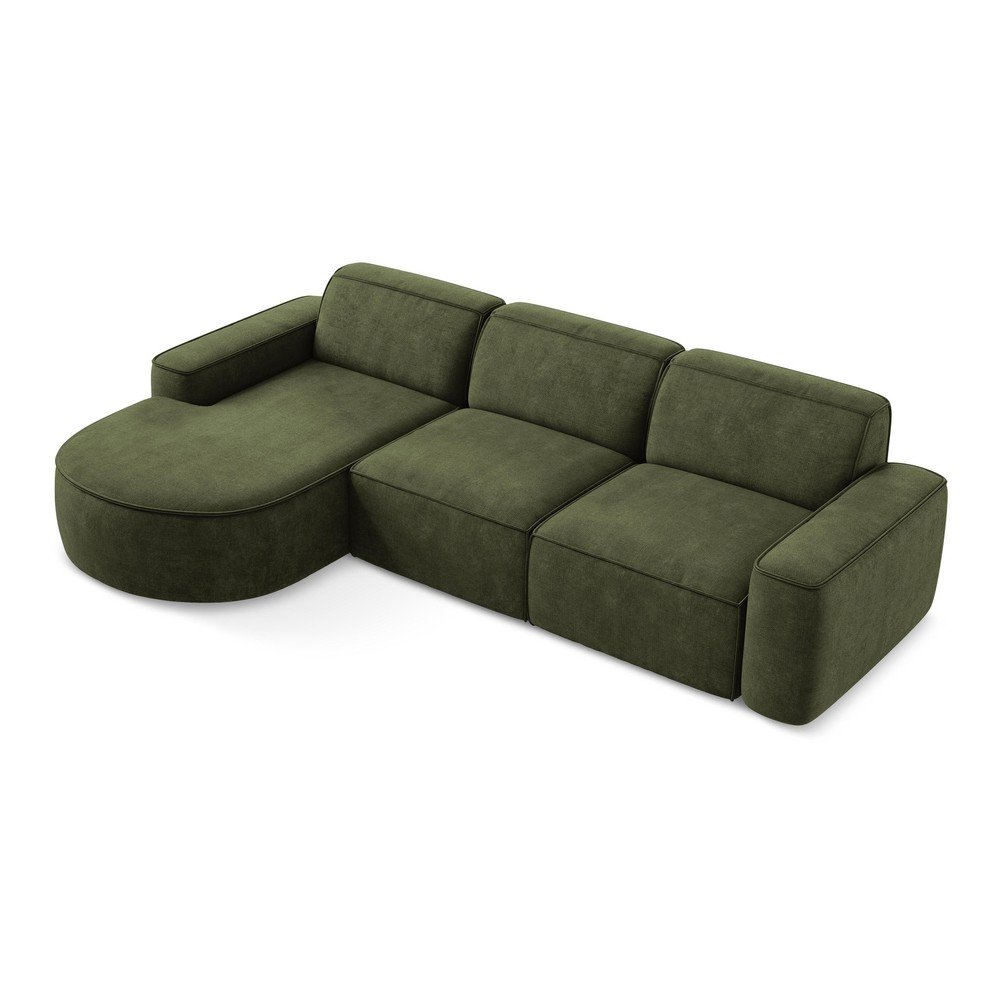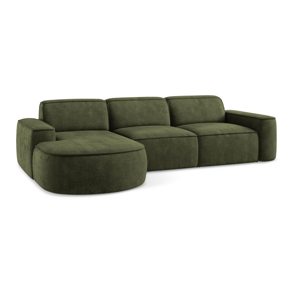 Zielony narożnik z tkaniny szenilowej (lewostronny/z szezlongiem) Omao – Makamii