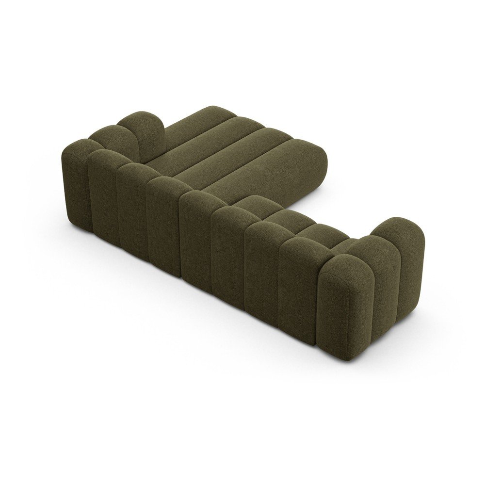 Zielony narożnik z tkaniny szenilowej (prawostronny/z szezlongiem) Lupine – Micadoni