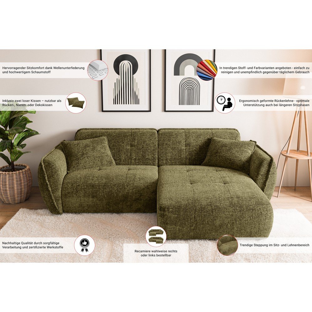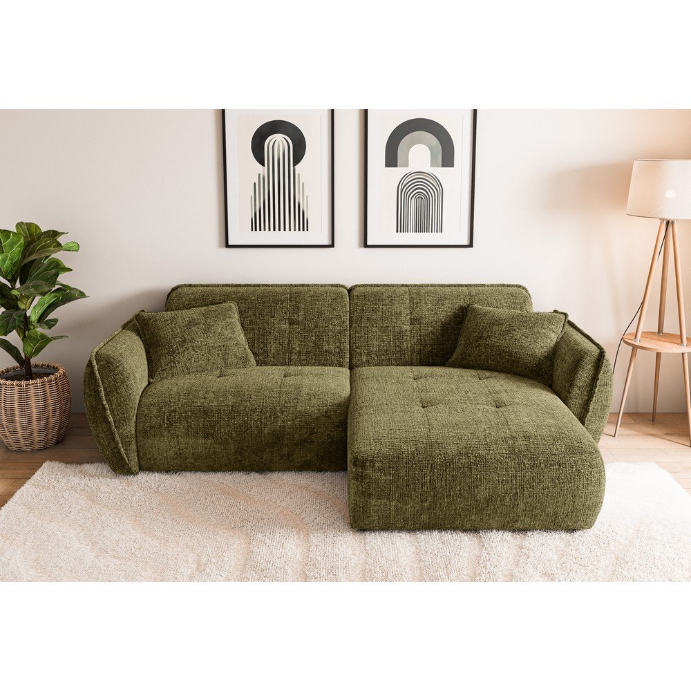 Zielony narożnik z tkaniny szenilowej (prawostronny/z szezlongiem) Nelia – Ropez