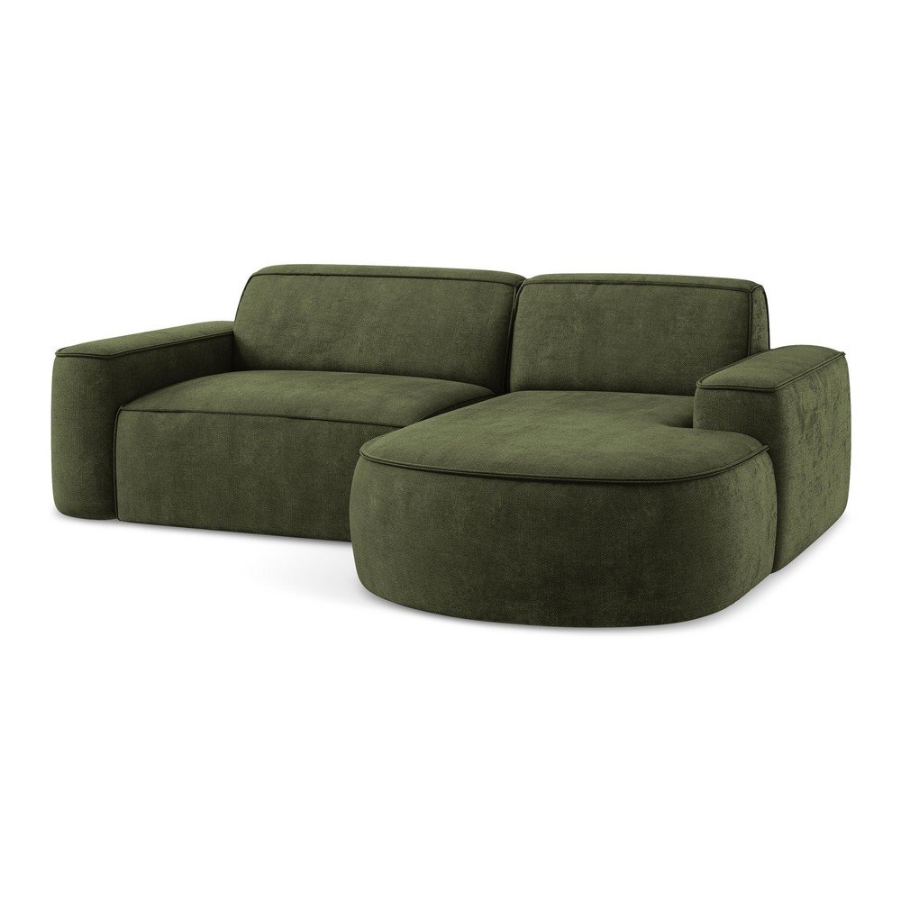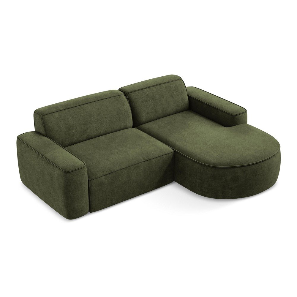 Zielony narożnik z tkaniny szenilowej (prawostronny/z szezlongiem) Omao – Makamii