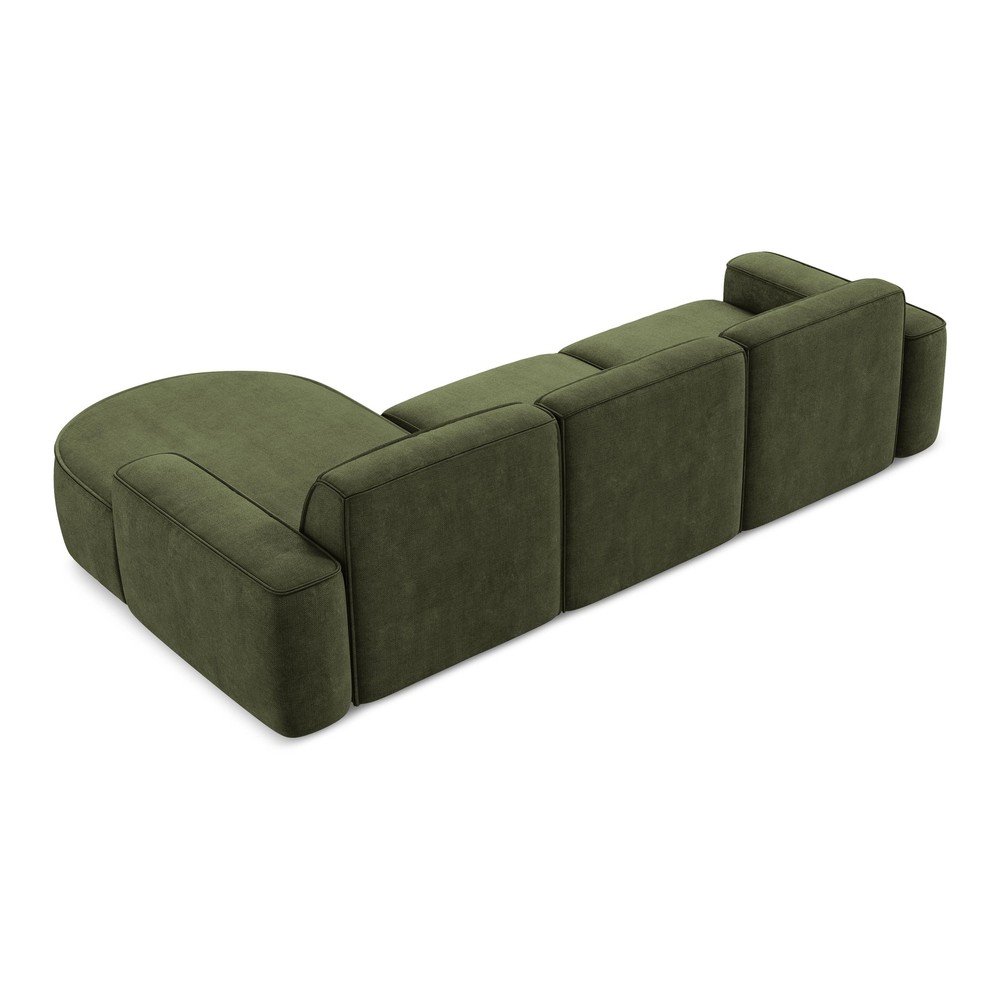 Zielony narożnik z tkaniny szenilowej (prawostronny/z szezlongiem) Omao – Makamii