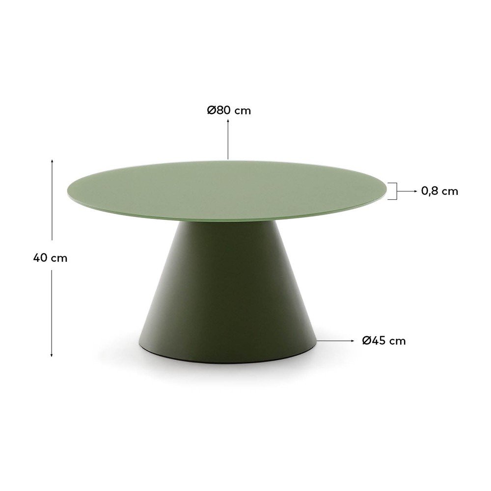 Stolik Wilshire marki Kave Home to elegancki dodatek, który pięknie uzupełni wystrój Twojego salonu. Jego design wyróżnia się okrągłym blatem wykonanym z hartowanego szkła, które zostało dodatkowo zabezpieczone przed pozostawianiem odcisków palców.