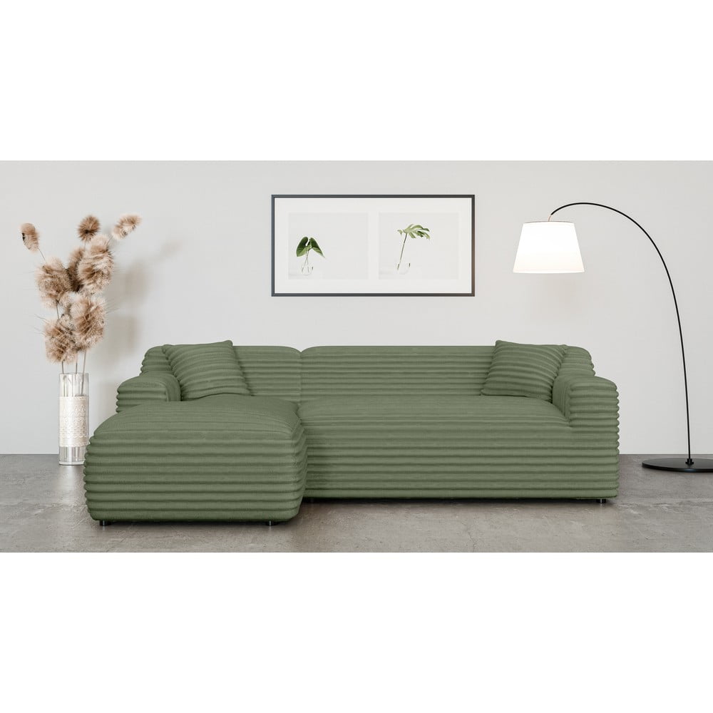 Zielony sztruksowy narożnik (lewostronny/z szezlongiem) Martin – Ropez