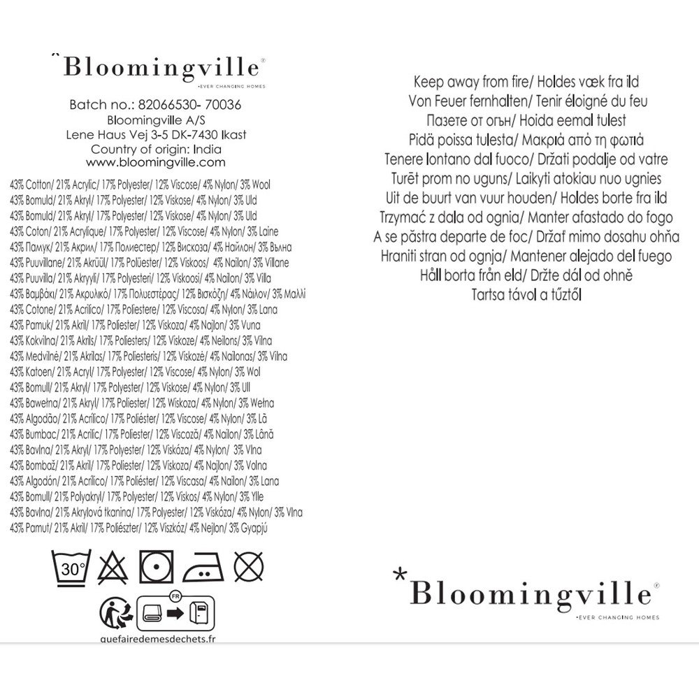 Koc Reims marki Bloomingville jest utkany z bawełny pochodzącej z recyklingu. Jest ozdobiony bogatym kwiatowym wzorem i grubymi frędzlami wzdłuż krawędzi.